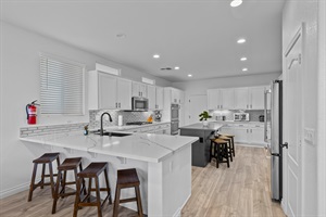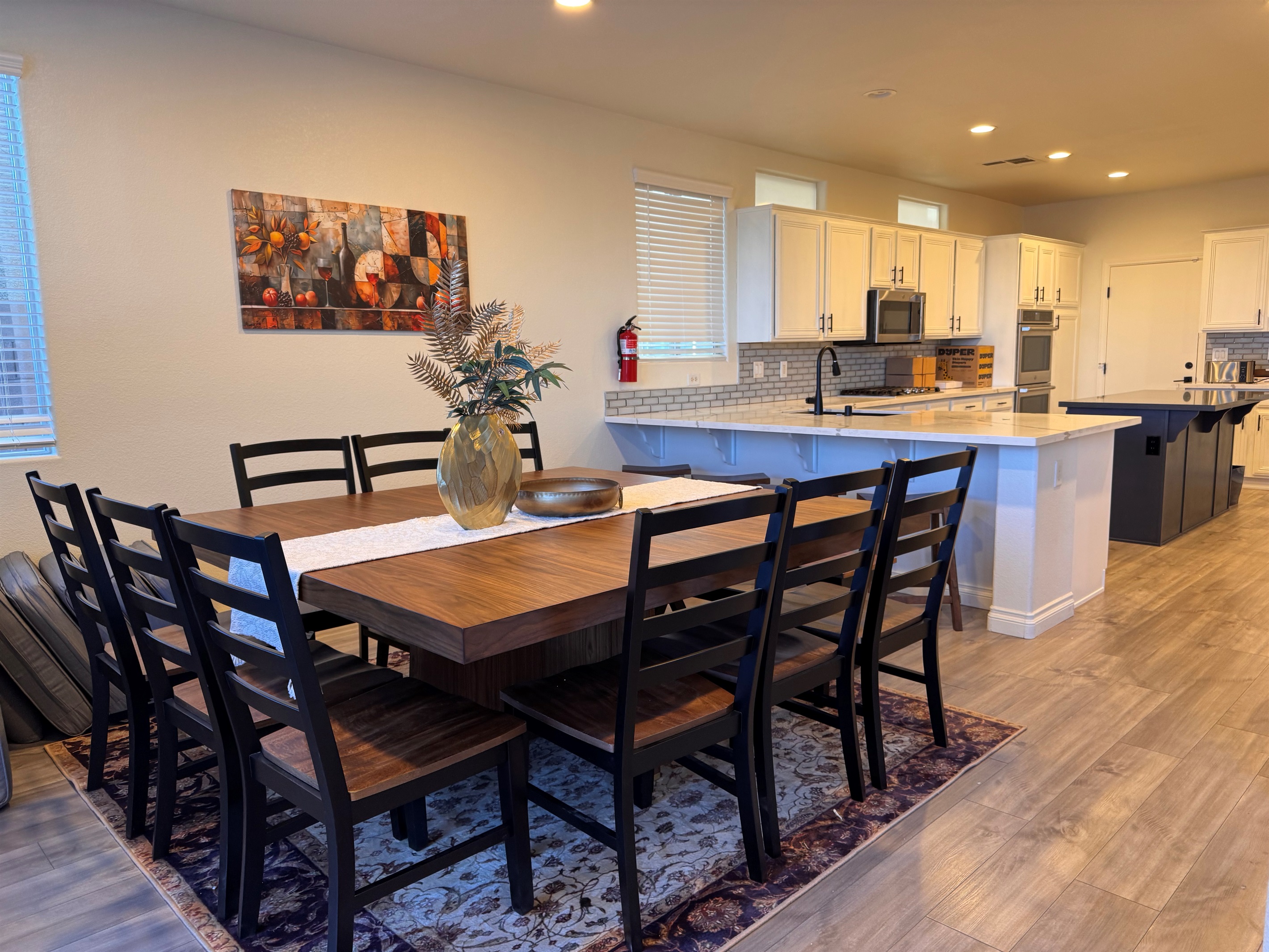 ★ Large 12-adult group dining table plus 2 areas of kitchen counter seating